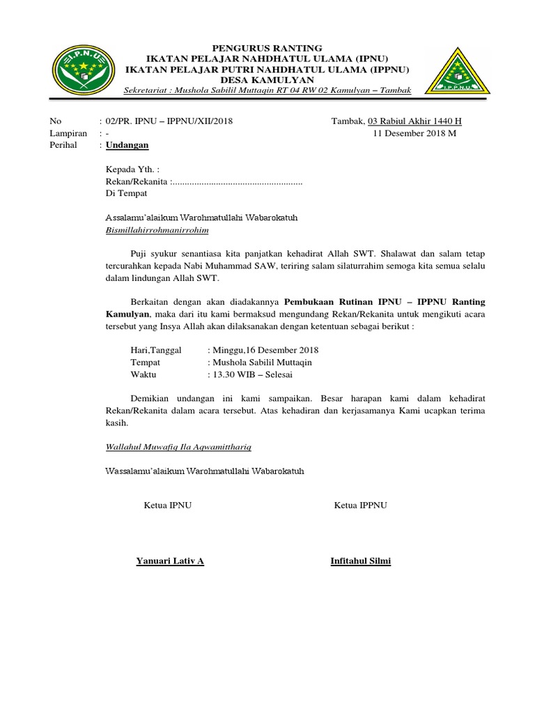 Contoh Surat Undangan Resmi Ipnu Ippnu from imgv2-1-f.scribdassets.com Ini adalah aplikasi untuk membuat permohonan surat tugas secara online. Zainul azhari pk.pt ipnu unisla tertib administrasi, modal kemajuan organisasi. Kami relawan ipnu ippnu pac. Di bawah ini adalah beberapa contoh surat tugas yang benar. Contoh surat tugas kepala sekolah. Pentingnya surat tugas untuk berbagai urusan. Jika anda sedang mencari informasi mengenai surat tugas, saat ini anda membaca artikel yang tepat. Pada zaman modern, ternyata tidak mengurangi eksistensi surat.